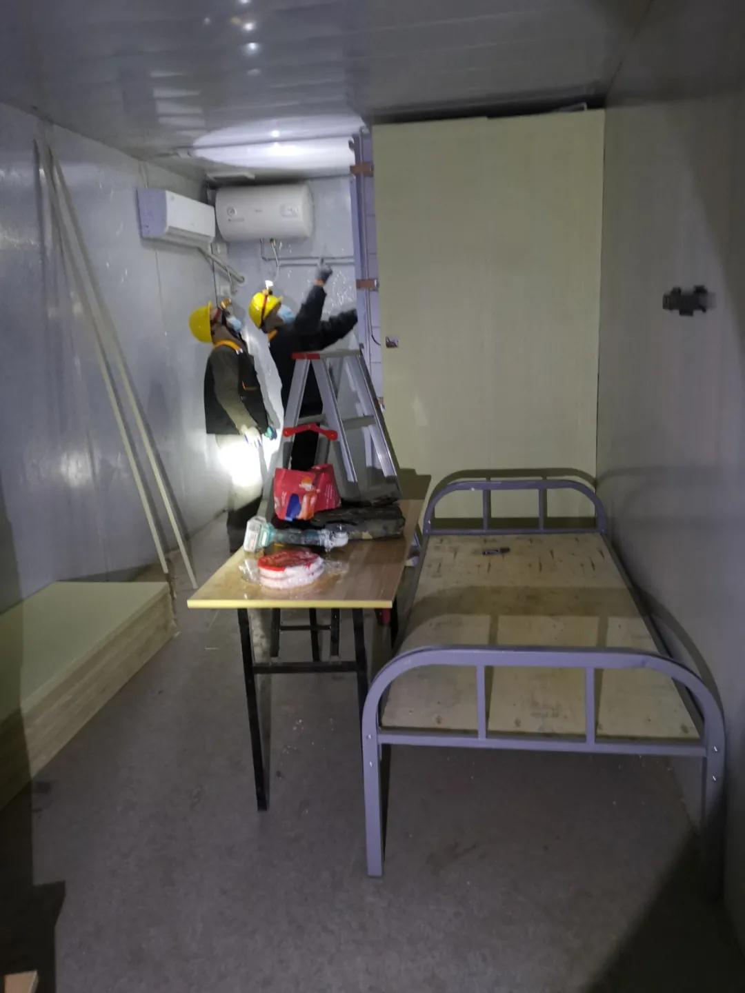 接到指令,馬上參建。19日晚,常宏第一批六名工人進入隔離區(qū)施工現(xiàn)場,并迅速連夜投入工作,為隔離間的衛(wèi)生間外側安裝墻板,直至凌晨。短暫休整后,于20日一早再次投入施工中,仍有更多常宏工人將在辦理完成社區(qū)/村/鎮(zhèn)的出入手續(xù)后陸續(xù)加入到現(xiàn)場。