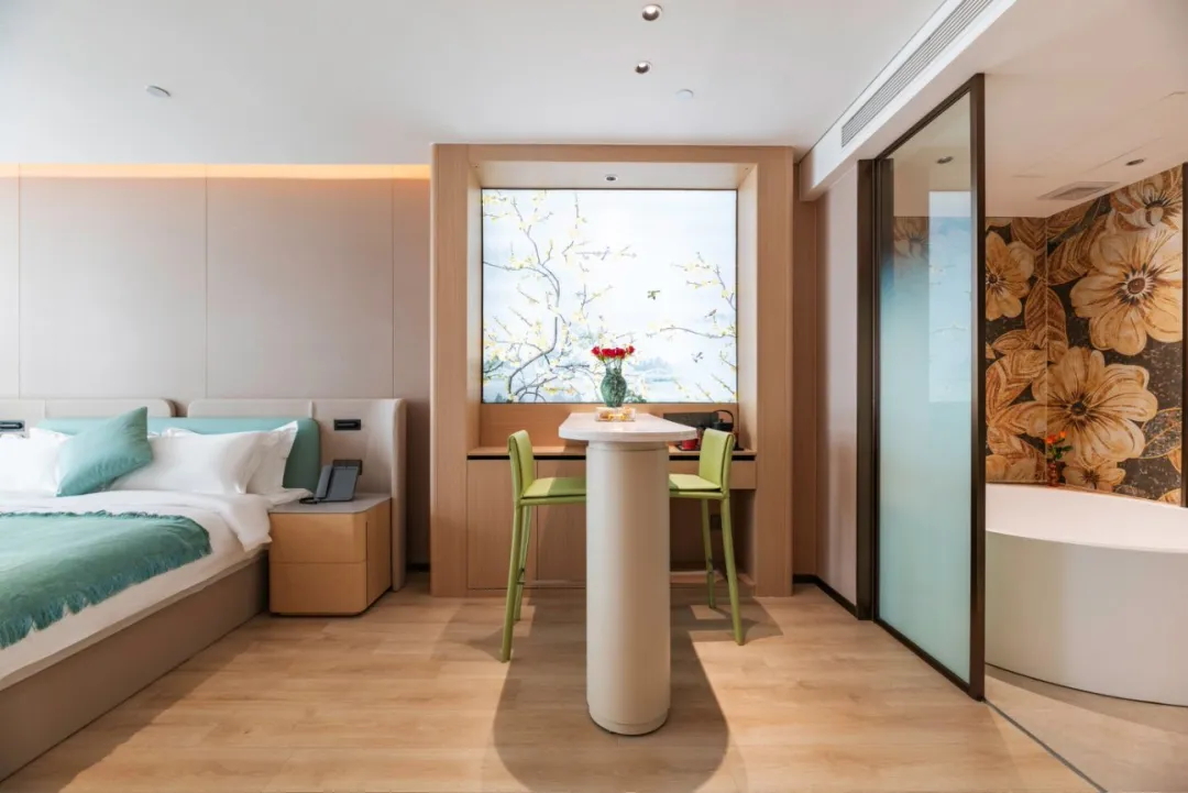 主材:巖板、淺木色飾面板、仿壁布快裝墻板、不銹鋼等