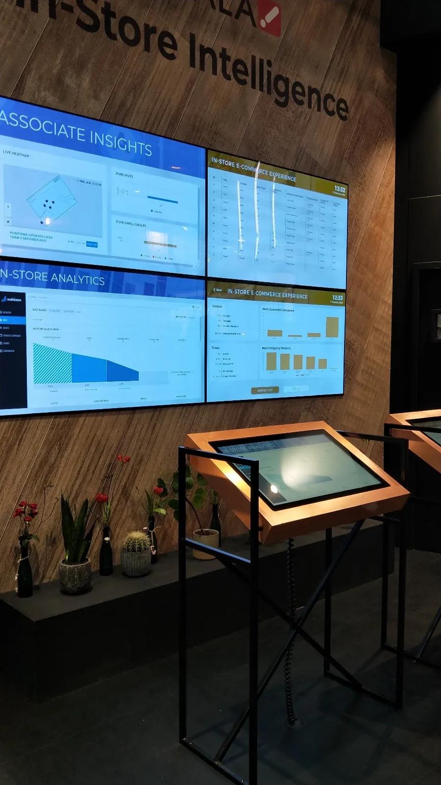 這一組看板則是展示著各種前場(chǎng)收集到的數(shù)據(jù),包括客流量、男女比例、年齡比例、成交率、熱度分布,客流軌跡等。