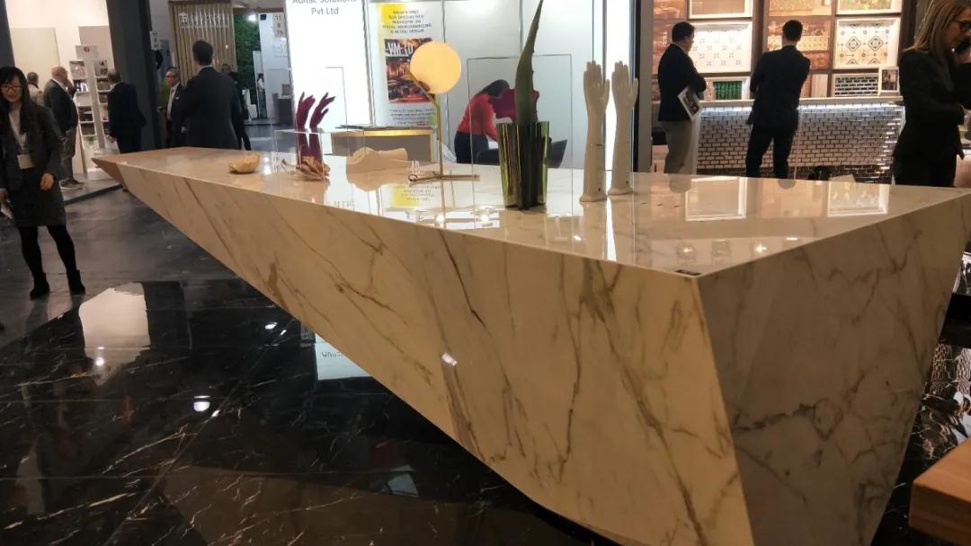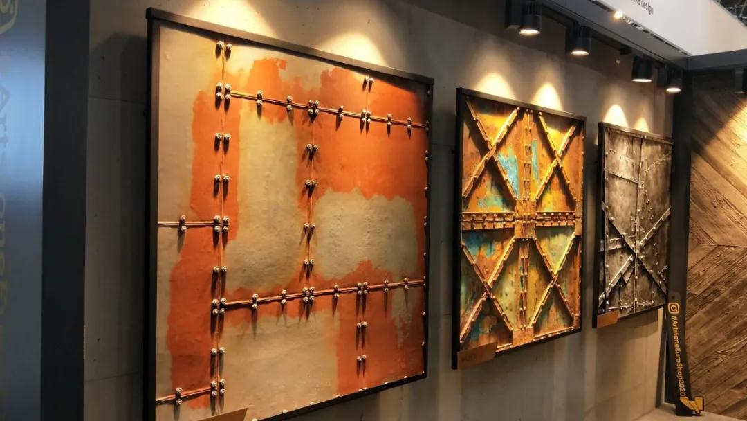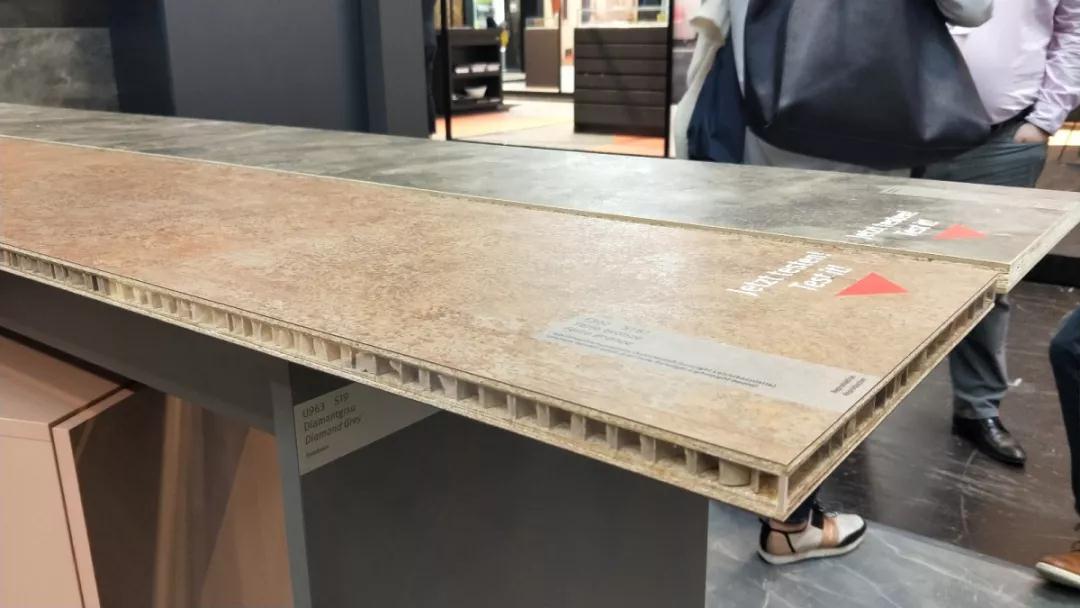 材 料 是科學(xué)技術(shù)發(fā)展的結(jié)果,同時(shí)材料的應(yīng)用也會(huì)帶來(lái)新技術(shù)的變革。本次展會(huì)的材料展區(qū)整體呈現(xiàn)著輕量化、復(fù)合化、高仿真的特點(diǎn)。這些特點(diǎn)主要體現(xiàn)在各類型高仿真的陶瓷薄板(仿石紋理、仿木紋理)、仿鏡面薄膜、殼體結(jié)構(gòu)復(fù)合板、仿真石材等。
