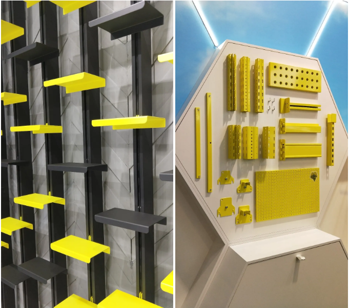 商業(yè)零售店面的道具主要以鋼制為主,展會呈現(xiàn)給大家的商業(yè)道具具備以下特點: