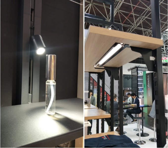 2、道具與照明結(jié)合緊密,進行了一體化設(shè)計。無論是線條燈還是射燈,都采用獨立線路,觸點式接觸。