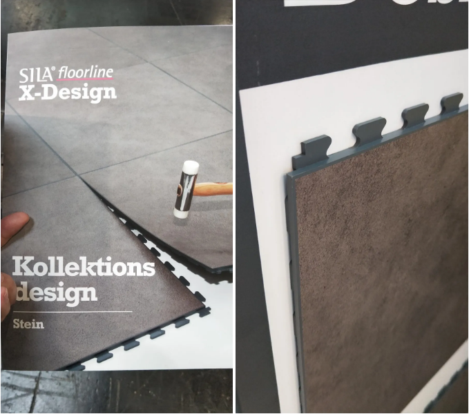 下面的兩種地面材質(zhì)適合對現(xiàn)有零售賣場地面進行改造升級,干法施工、方便快捷。每塊板的相鄰兩個直角邊為“卯”,另外兩個邊為“榫”,這樣的承插設(shè)計的好處是既方便人員操作施工,又可以在其中某一塊板件損壞需更換的時候方便取下來。這一點跟國內(nèi)許多快裝地板相比有著獨特的優(yōu)勢,值得借鑒。