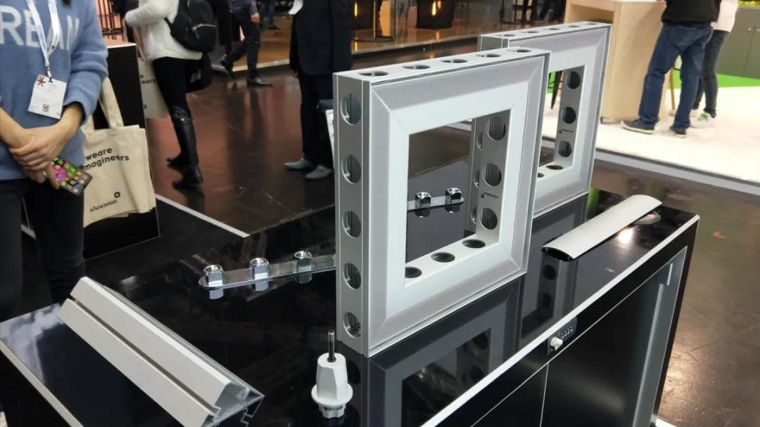 還有一款是今年新推出的墻板,厚度80毫米。面板可以是拉布,也可以是硬質(zhì)板,同時可以集成各類顯示設(shè)備和燈箱。