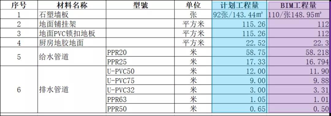 5、工程量的統(tǒng)計(jì)。通過BIM的模型對各種材料量的統(tǒng)計(jì)可以快速生成報(bào)價(jià),同時(shí)指導(dǎo)實(shí)際的材料使用量。