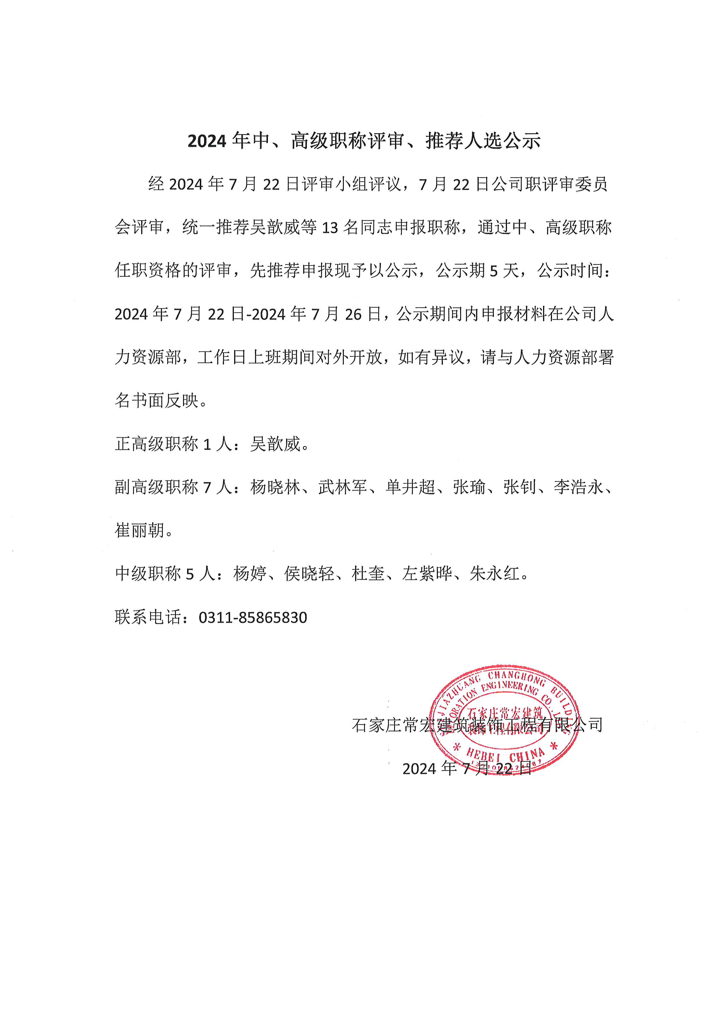 2024年中、高級(jí)職稱評(píng)審、推薦人選公示