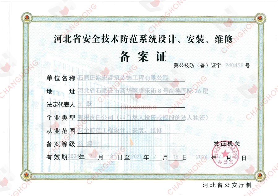 石家莊常宏建筑裝飾工程有限公司,高新技術(shù)企業(yè),擁有建筑裝飾甲級(jí)設(shè)計(jì)、建筑幕墻工程/消防設(shè)施工程設(shè)計(jì)專(zhuān)項(xiàng)乙級(jí)、建筑裝修裝飾工程專(zhuān)業(yè)承包壹級(jí)、建筑工程施工總承包貳級(jí)、幕墻/機(jī)電/鋼結(jié)構(gòu)/消防設(shè)施/鋼結(jié)構(gòu)電子與智能化工程專(zhuān)業(yè)承包貳級(jí)資質(zhì)。