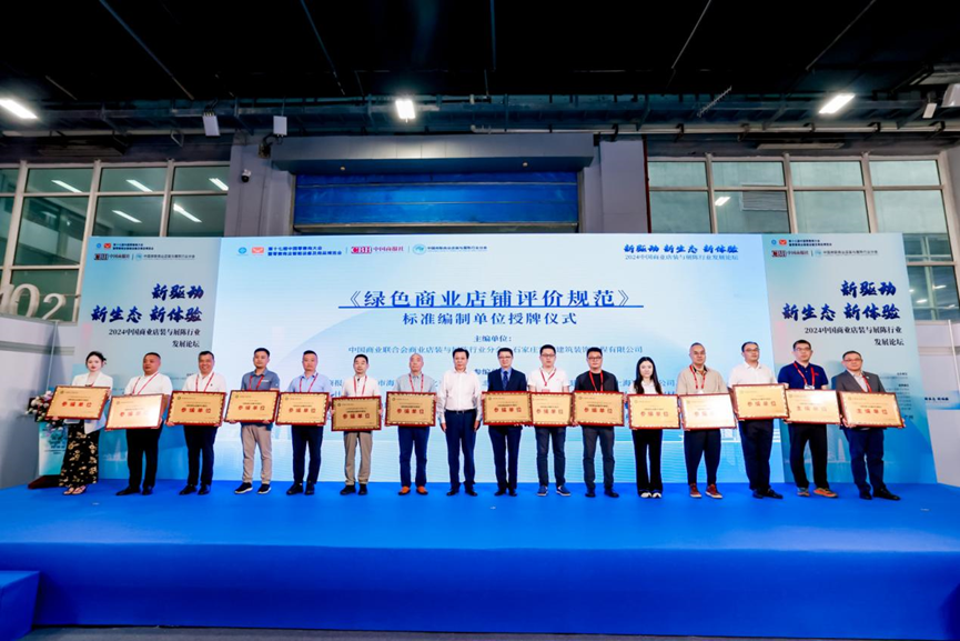 中國商業(yè)聯(lián)合會執(zhí)行會長王民對參與中國商業(yè)聯(lián)合會團體標準《商業(yè)店裝與展陳技術規(guī)范》編制的單位進行授牌