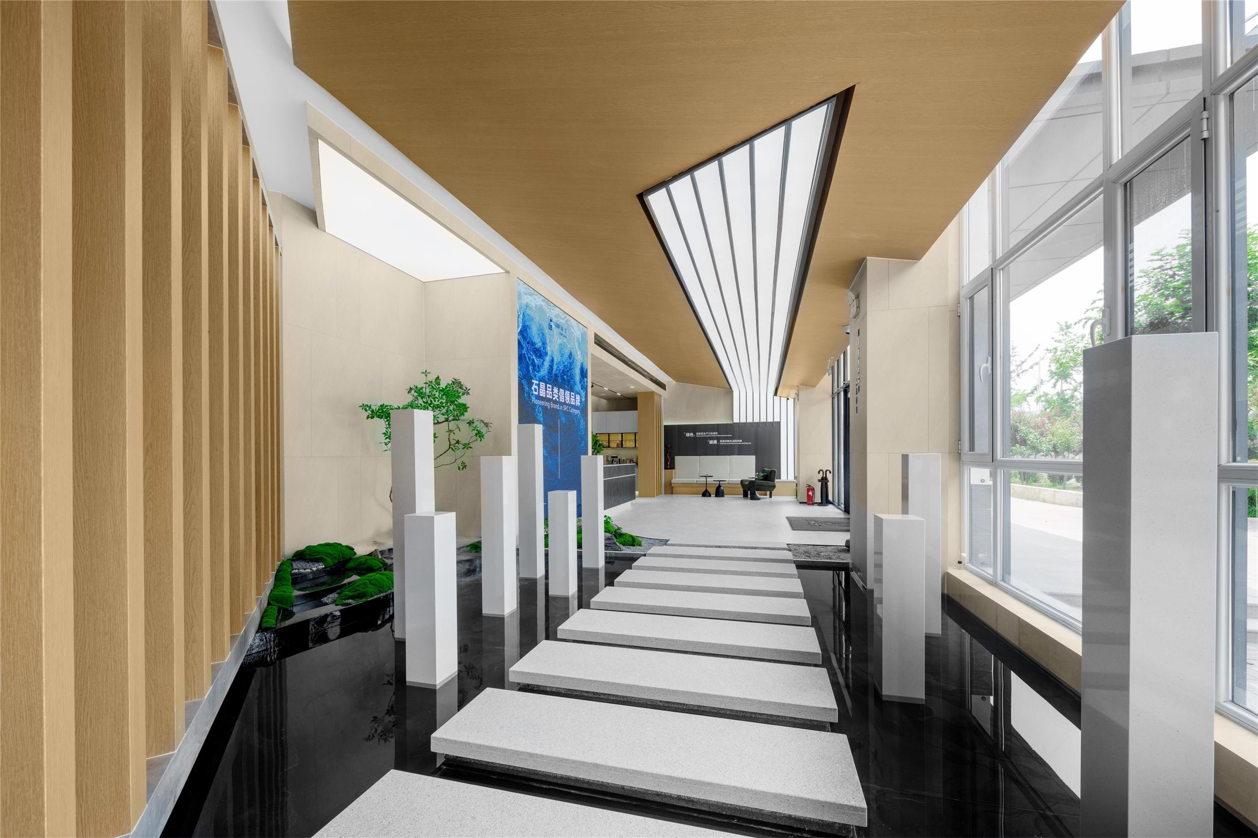 小藍(lán)鯨正定保稅區(qū)品牌形象展廳立足于企業(yè)歷史文化的戰(zhàn)略性總結(jié),以524平方米的一層空間為載體,融合品牌宣傳、產(chǎn)品展示、客戶接待等多重功能。作為連接辦公空間與生產(chǎn)園區(qū)的樞紐,展廳不僅承載著品牌形象的對外傳播,更通過設(shè)計(jì)的力量,將企業(yè)文化與創(chuàng)新精神具象化。
