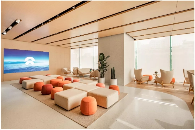 國際莊的NIO House,一份科技感與時(shí)尚設(shè)計(jì)融合,被分隔開的兩個(gè)Gallery區(qū)域,給予人們更寬更廣的展示空間,沉穩(wěn)中又有著跳躍的科技音符。