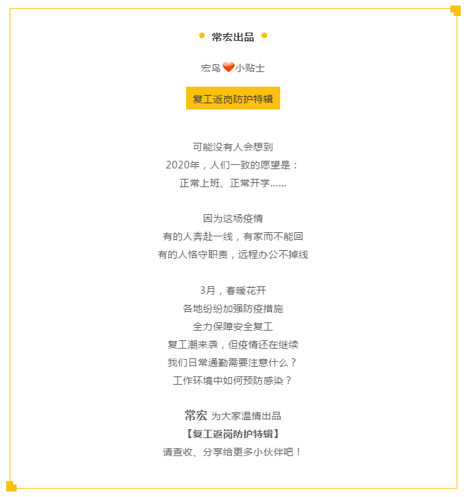 【宏鳥小貼士】復(fù)工進行中,返崗防護特輯請查收!
